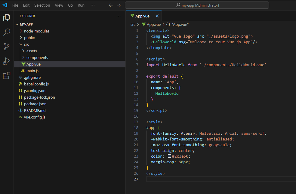 VSCode에서 my-app 폴더를 오픈하면 아래와 같이 my-app 구조를 확인할 수 있다.
